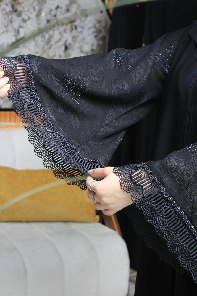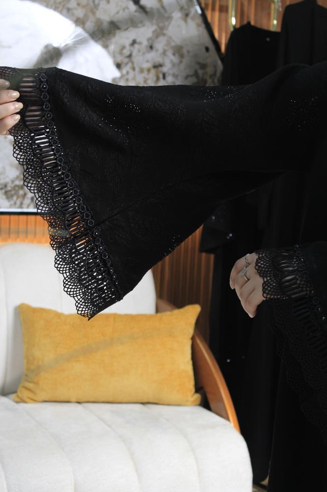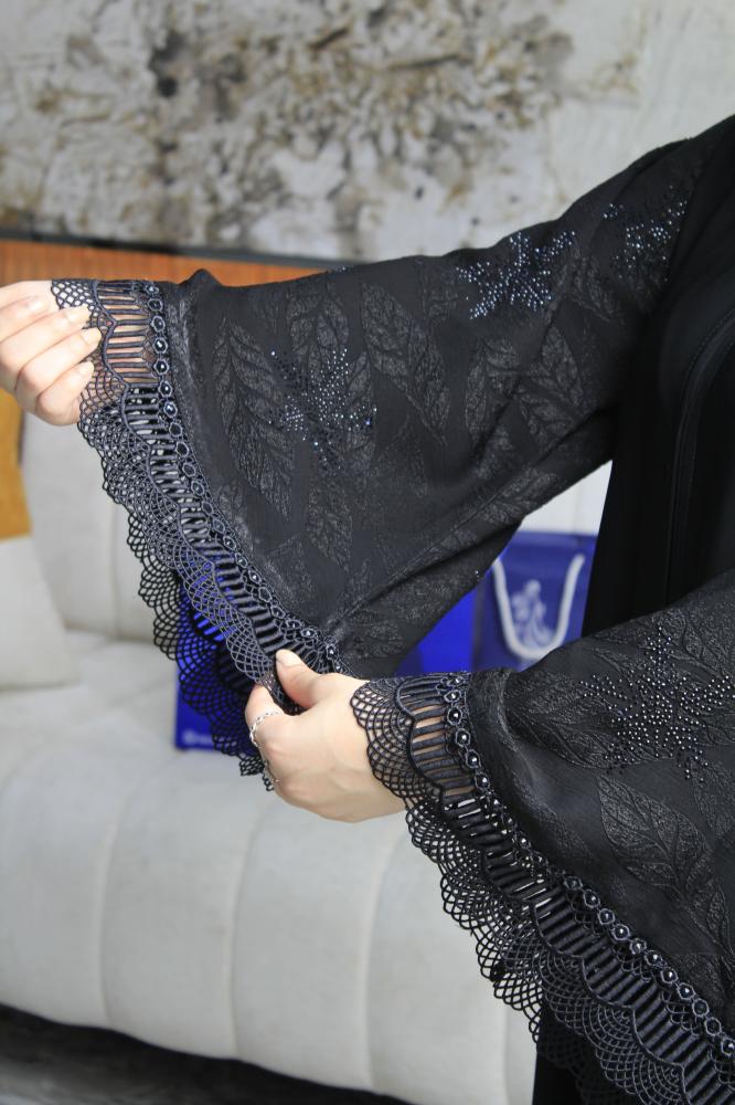 إليكِ عباية رغد المصنوعة من أجود أنواع الكريب الملكي الفاخر، بقصة أنيقة وأكمام مطرزة بكريستالات لامعة تمنحك حضورًا متألقًا في كل مناسبة.
