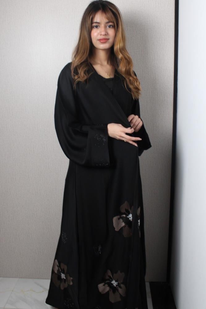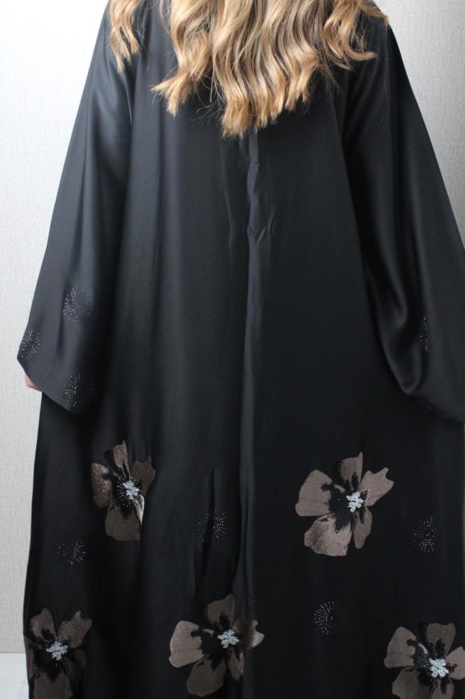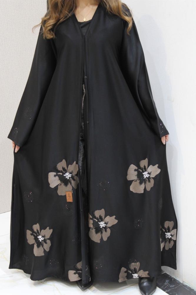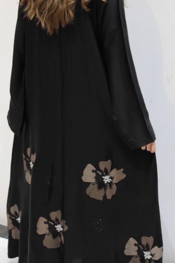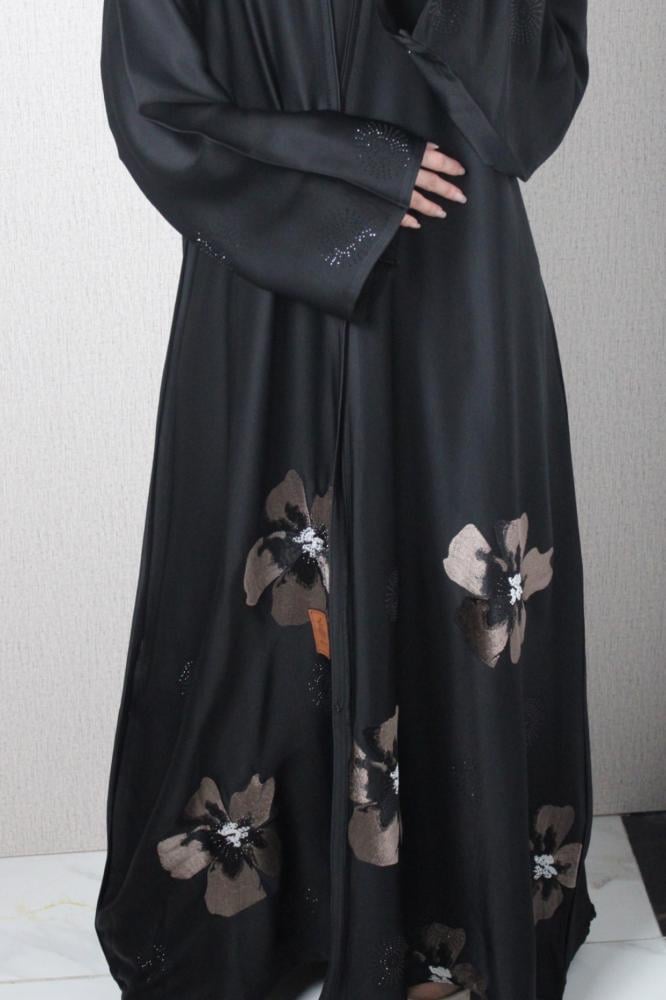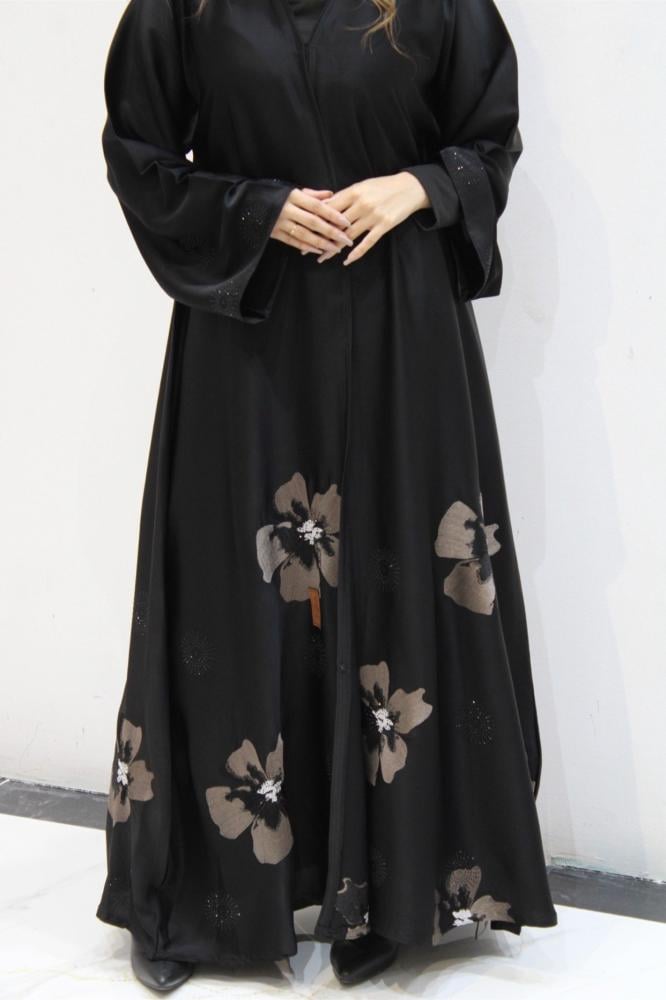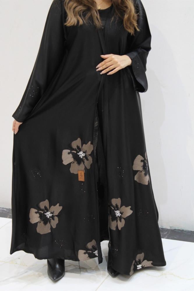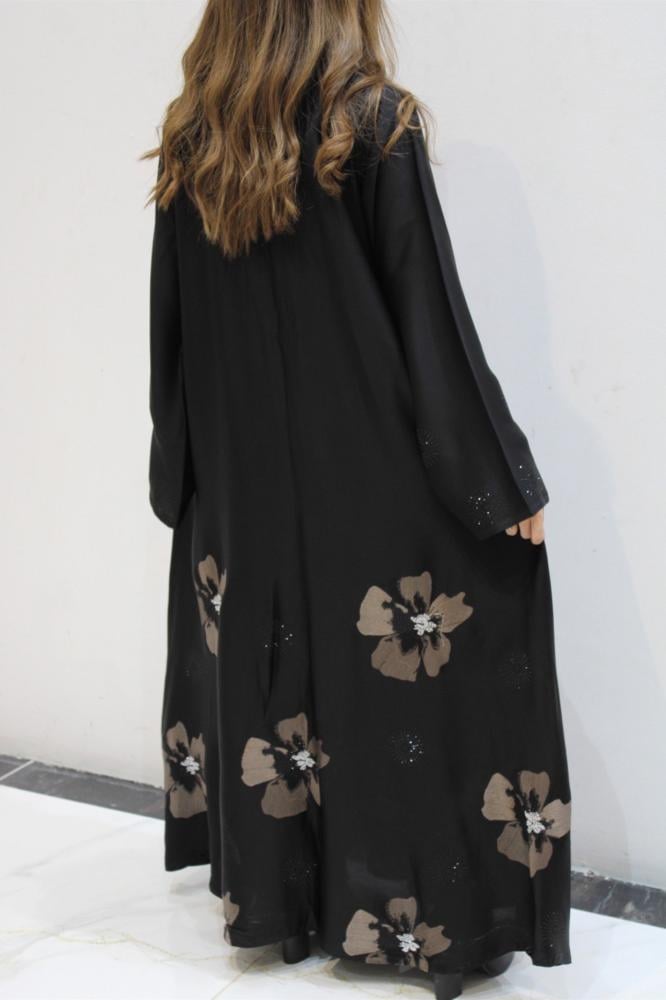 التصميم: عباءة أنيقة بتطريز وردي رائع يعكس الفخامة والتفرد. يتميز التطريز بجودة عالية وفن متقن يضفي لمسة جمالية مميزة على العباءة.